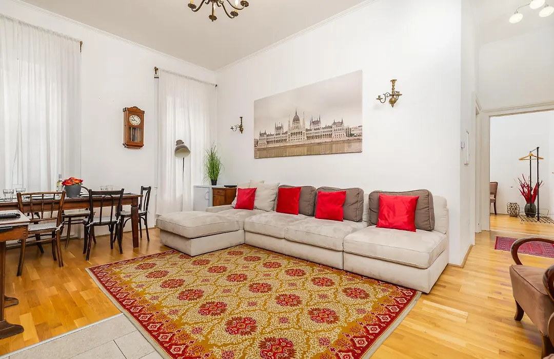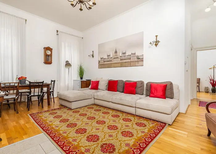 El apartamento de 95 m² está a unos 1 km de la Iglesia Parroquial de la Asunción de la Virgen y a un corto paseo del Ojo de Sziget. El Central Budapest Apartment In Historical Building With Free Private Parking está situado a 5 minutos a pie del Teatro y Opereta de Budapest, a 650 metros de la estación de metro Oktogon. Entre los puntos de interés más populares cerca de esta el apartamento se incluye la Ópera Nacional de Hungría, que está a 400 metros.